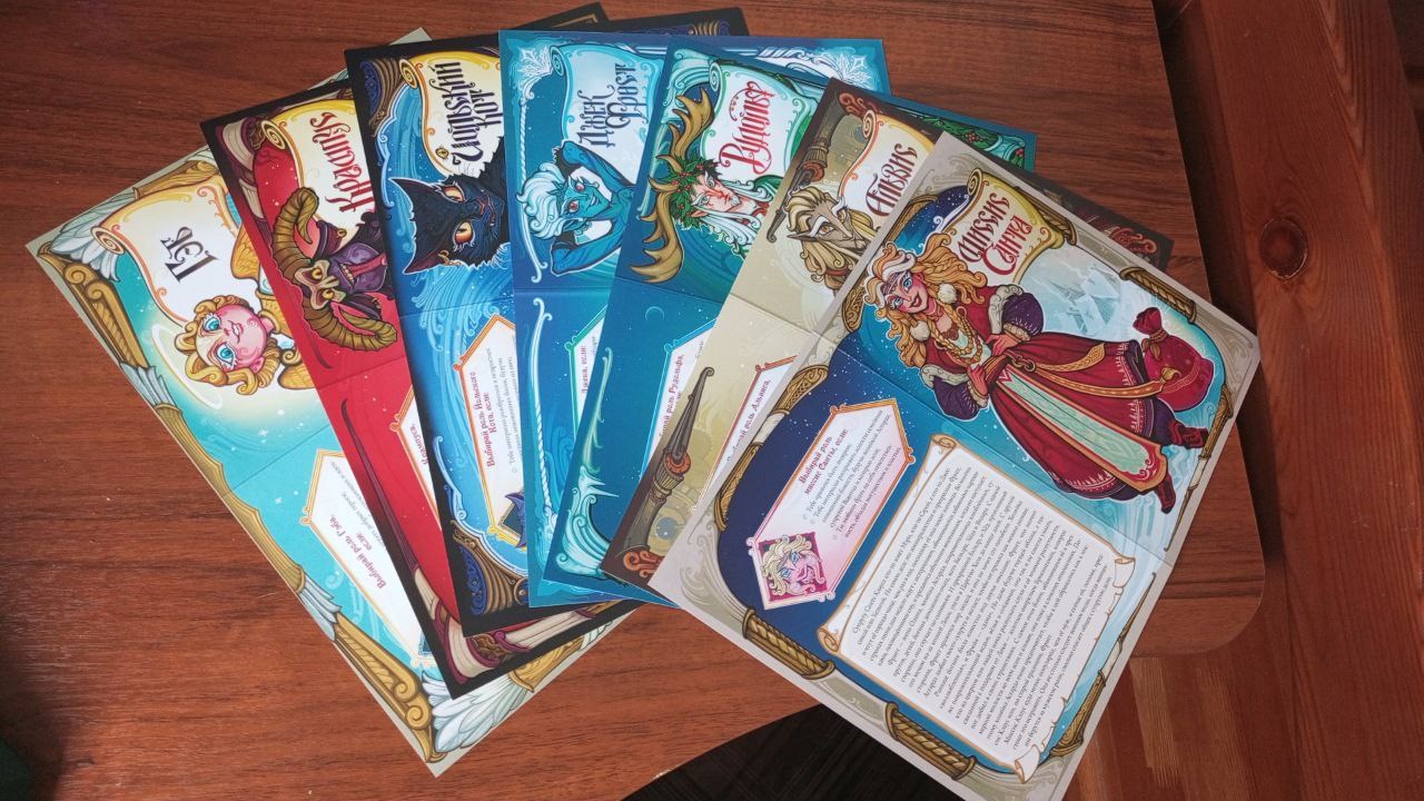 Легенды о героях выполнены на семи буклетах формата А5 с иллюстрацией персонажа на лицевой стороне и его параметрами на внутренней. Семь чудесных помощников Санта-Клауса вписаны в кампанию и легко адаптируются под желания игроков как на старте приключений, так и в процессе развития.